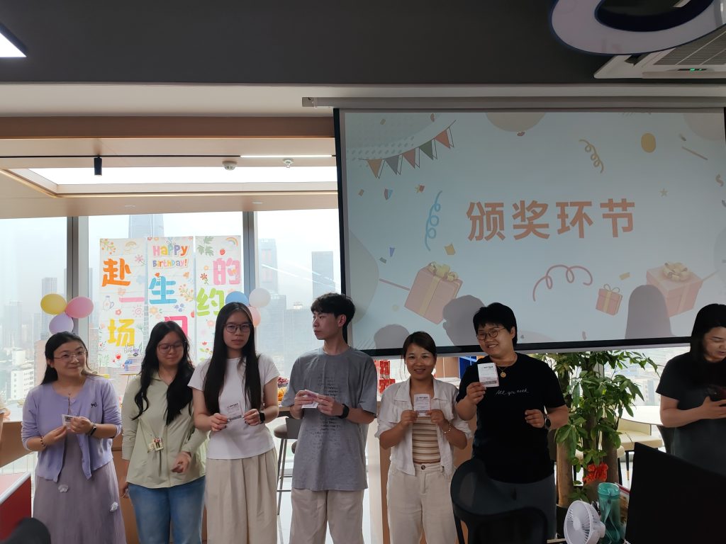 除了温馨的祝福,生日会还准备了有趣的互动小游戏!大家积极参与、默契配合,现场欢声笑语不断,不仅缓解了工作的疲惫,更让同事们在玩乐中增进了情谊。